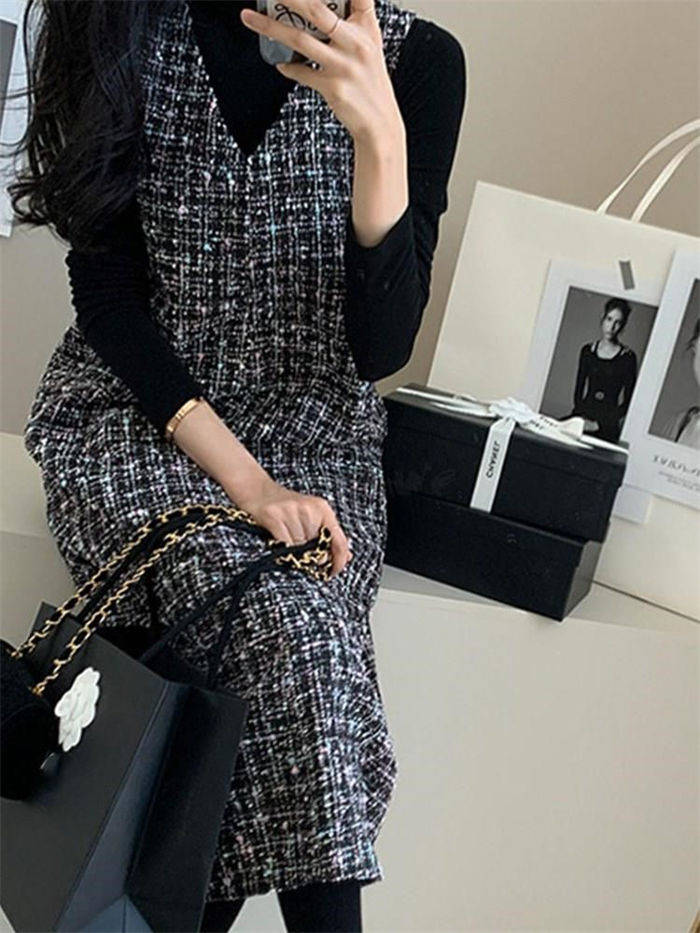 素材 ポリエステル 生産国 中国 キーワード 即納 ツイード ジャンパースカート 秋 冬 ラメ入り ジャンパースカート vネック レディース 大人 ノースリーブ ワンピース 秋冬 黒 きれいめ レディース ロング丈 大きいサイズ ジャンスカ オールインワン バックファスナー付き スリット 上品 通勤 オフィス OL 重ね着 おしゃれ レイヤード 秋 冬 30代 40代 送料無料