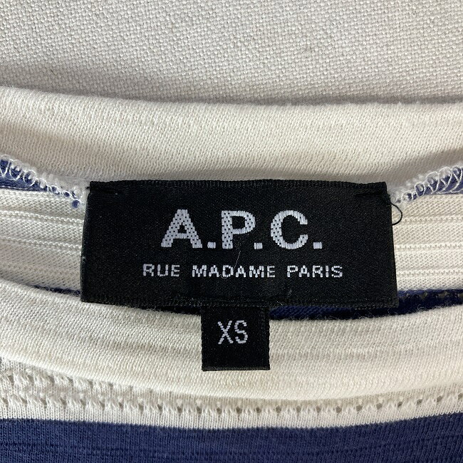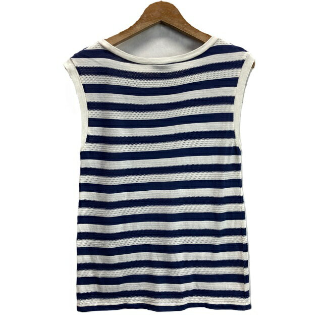 表記サイズ:XS 参考サイズ:レディースXS 実寸サイズ 着丈(cm):56 肩幅(cm):42 身幅(cm):40 袖丈(cm):タンクトップの為、計測不可 ブランド:A.P.C. 生産国:日本 カラー:ホワイト系・ネイビー系 素材:綿100% 裏地:なし コンディション:B