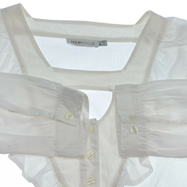 ブランド名:SEE BY CHLOE 表記サイズ:38 実寸サイズ 肩幅: 35cm 身幅: 42cm 着丈: 53cm 袖丈: 40cm 生産国:中国 素材:コットン100% コンディション:C 左側袖口糸ほつれ