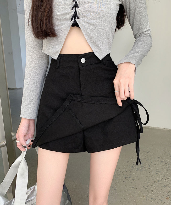 商品説明サイドリボンラップスカートパンツサイドのレースアップデザインが女性らしい印象を与えるスカートパンツ。