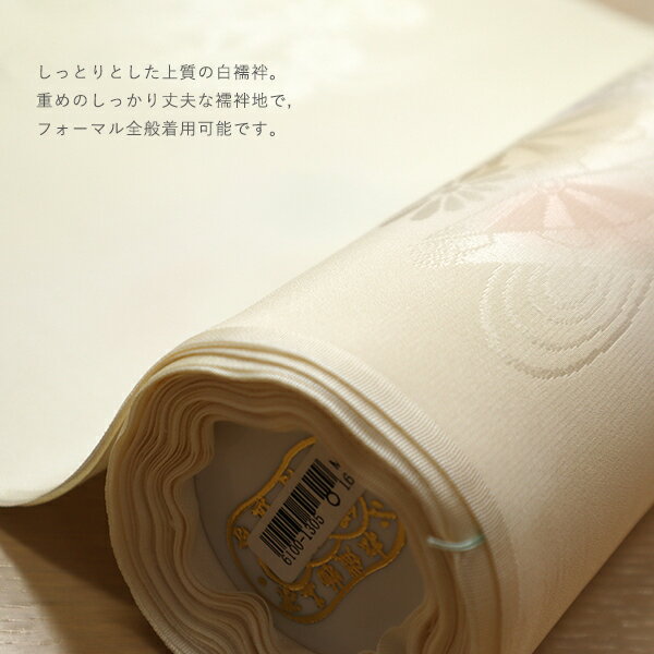 小松ちりめんの長襦袢用反物です。 肌になじむオフホワイトの地色に、 花車が飛び柄でデザインされた上品な印象の襦袢地です。 材質:絹100%サイズ:巾38.5cm×長さ13.5m【 お仕立てをご希望の方は採寸表を買い物かごへ 】 長襦袢の寸法から からだの寸法から 和裁用の寸法から