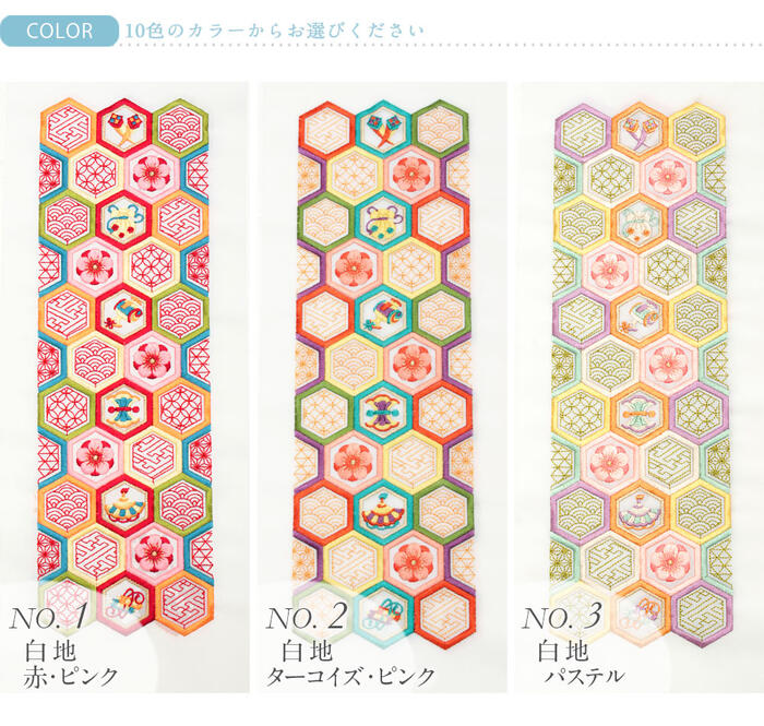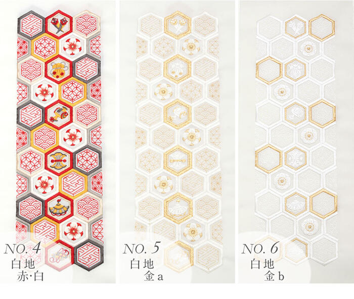 ◆合わせる着物◆ 通年の 振袖 卒業袴 色無地 小紋 紬 ウール着物 普段きもの ◆こんなシーンに◆ 春 夏 秋 冬 結婚式 成人式 お宮参り 七五三 など 着物の機会に ◆色◆ 白地×赤・ピンク系 白地×ターコイズ・ピンク 白地×パステル系 白地×赤・白 白地×赤a 白地×金b エンジ 黄土 紫 黒 ◆柄◆ 亀甲宝尽くし ◆素材◆ 衿地:ポリエステル100% 刺繍糸:レーヨン100%(金属糸使用の場合あり) ◆製造◆ 日本製 ◆備考◆