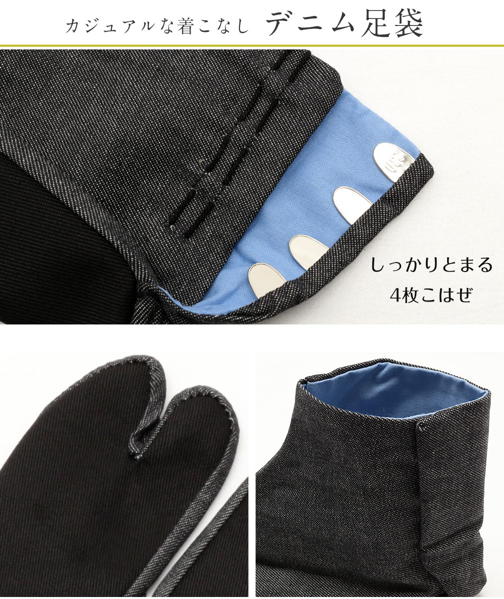 デニム足袋 カジュアルな着物にあわせたい、デニム生地の足袋。