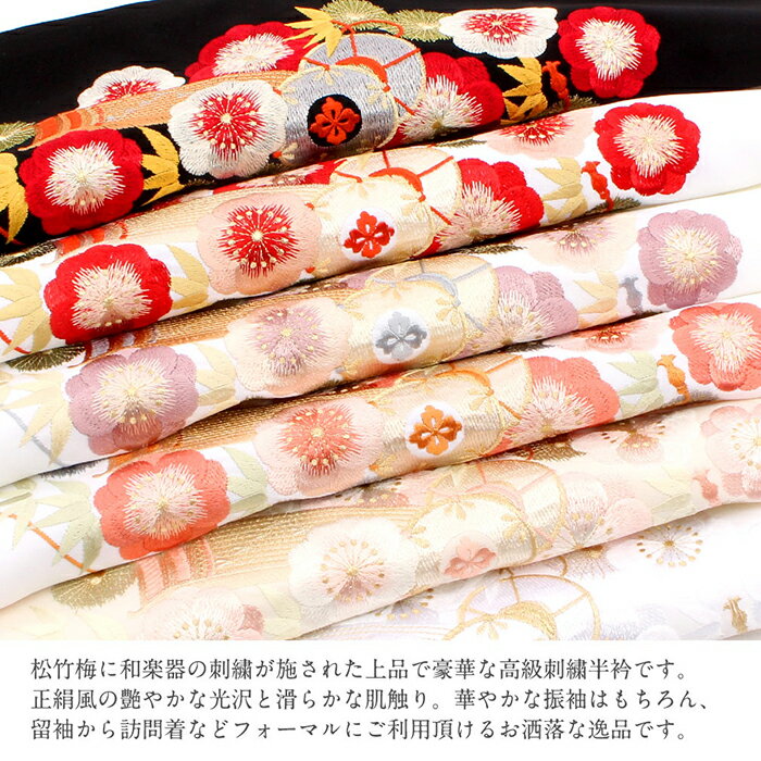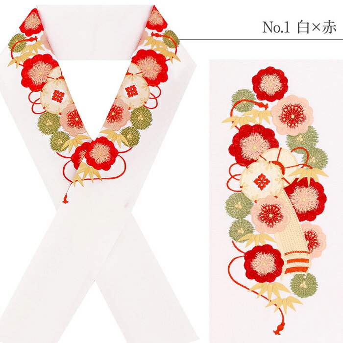 ◆合わせる着物◆ 通年の 振袖 卒業袴 色無地 小紋 ◆こんなシーンに◆ 春 秋 冬 結婚式 成人式 お宮参り 七五三 入学式 卒業式 など 着物の機会に ◆色◆ 全6色 ( 白×赤 白×ピンク 白×紫 白×金 クリーム×ピンク 黒×赤 ) ◆柄◆ 松竹梅に鼓と琴 ◆素材◆ 衿地:ポリエステル100% 刺繍糸:レーヨン100%(金属糸使用の場合あり) ◆製造◆ 日本製 ◆備考◆