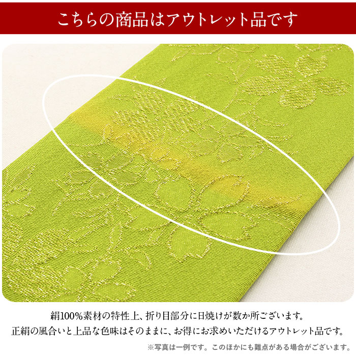 ◆合わせる着物◆ 色留袖 訪問着 色無地 付け下げ 小紋 振袖 ◆こんなシーンに◆ 結婚式 披露宴 お宮参り 入学式 七五三 祝賀会 園遊会 叙勲 授賞式 など ◆季節◆ 春 夏 秋 冬 ◆色◆ 黄緑色:落ち着いた和色のライトグリーン ◆柄◆ ラメ糸で桜模様が入った豪華な色(振袖用にも使えます) ◆サイズ◆ 長さ:約128cm 幅:約10.8cm