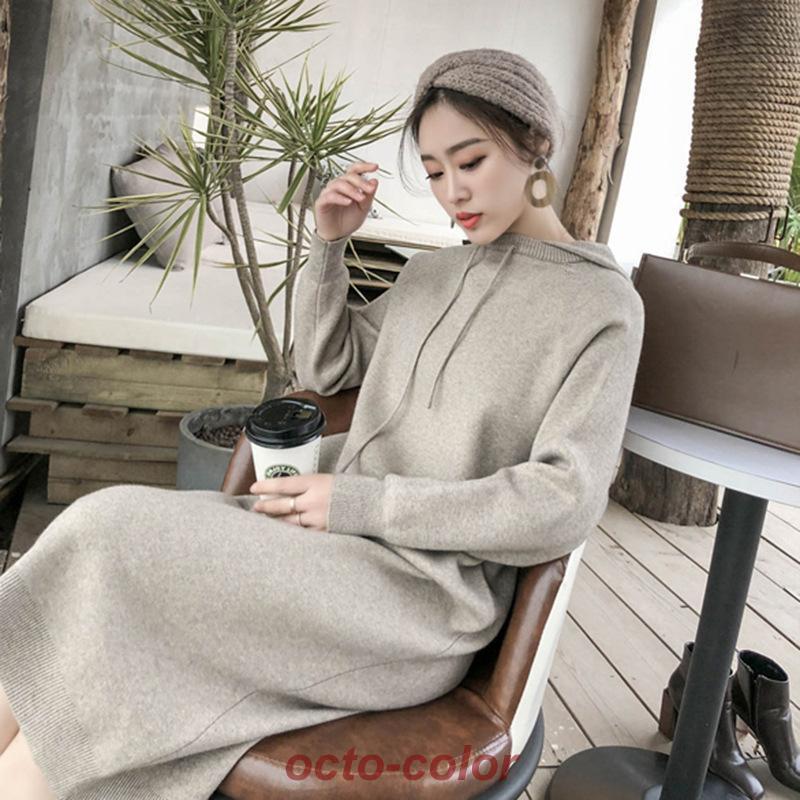 【素材】綿/ポリエステル【カラー】写真色【サイズ】:(約)バスト:94CM 着丈:92CM 肩幅:40CM 袖丈:53CM連携キーワード:ニットワンピース レディース 秋冬 きれいめ フード付き パーカー マキシワンピース 上品 長袖 着痩せ 通勤 旅行ドレス お出かけ 大人韓国風