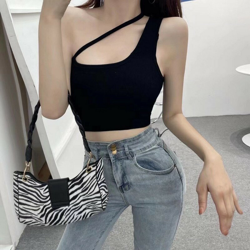 首回りがスッキリして見えるワンショルダーデザイン♪ ハイウエストのボトムスと合わせやすいショート丈で脚長効果も期待できます◎