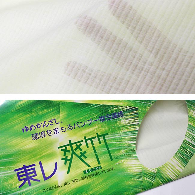 環境にやさしい竹を原料とした「バンブー繊維」に、東レの特品ポリエステル繊維を高度に複合した素材です。