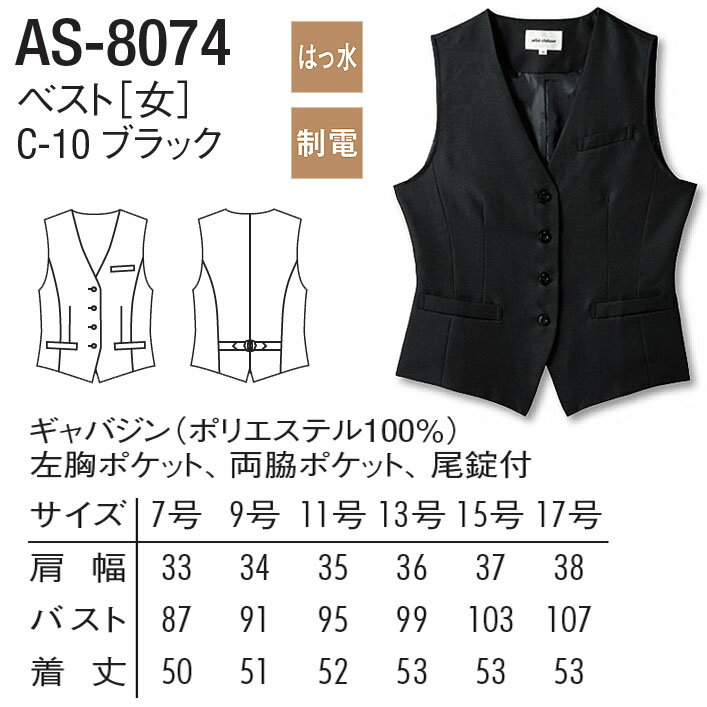 ■配送方法 宅配便 レディースベスト AS8074 7号〜17号 ブラック レディース 撥水 静電 飲食店レストラン ホテル ホール 接客 制服 ユニフォーム ベスト 大きいサイズ 小さいサイズ arbe/アルベ