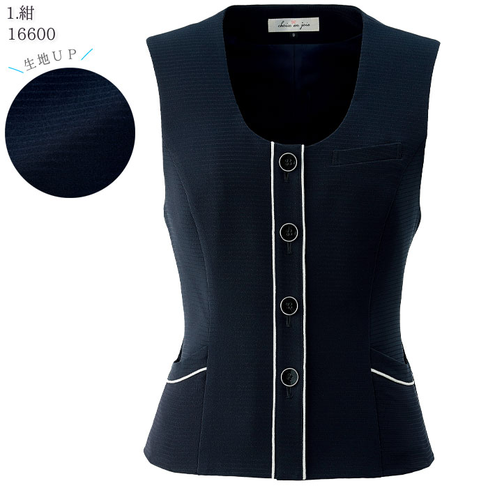 ■配送方法 宅配便 >> 17号・19号のご購入はこちら << ベスト 16600 アンジョア 紺 春夏 家庭洗濯 ストレッチ 吸汗速乾 接触冷感 エコ素材 enjoie フォーマル おもてなし服 接客 制服 仕事服