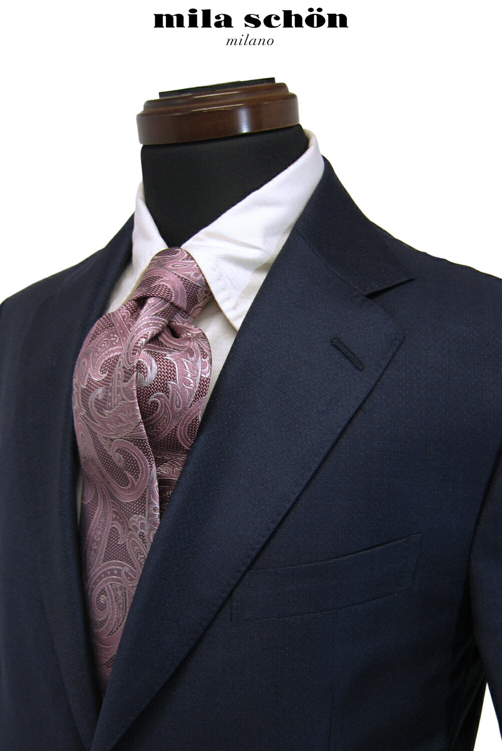 さすがロロピアーナ素材と納得のネイビースーツ。