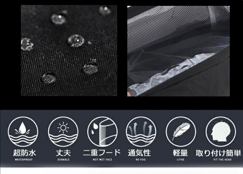 透明な二重つば:飛沫防止、風よけ、雨よけ防止、雪よけ防止などの機能があります。