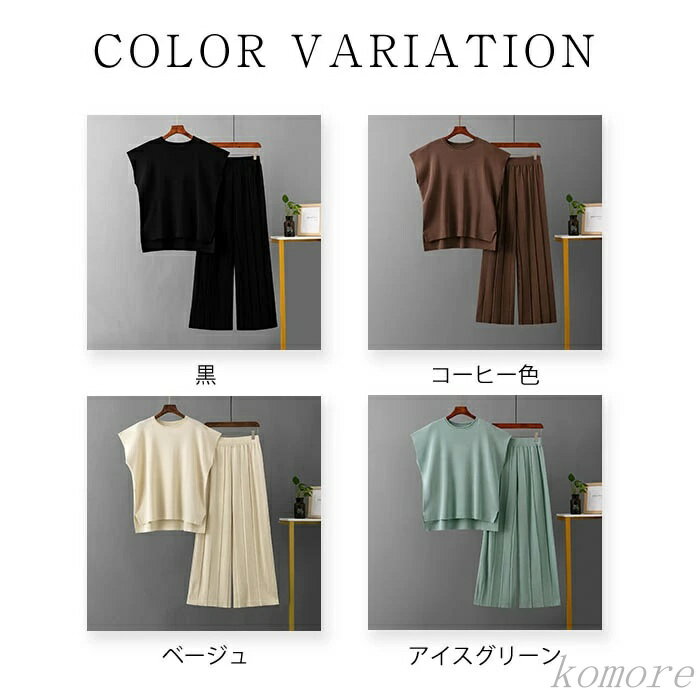 素材 ポリエステル 生産国 中国 キーワード セットアップ ニット 春夏 セットアップ レディース 夏 ニットセーター プルオーバー プリーツ ワイドパンツ トップス フレンチスリーブ ニットセットアップ 通勤 カジュアル シンプル ゆったり 涼しいニット 2点セット 上下セット 薄手 着回し 定番 黒 ベージュ 40代 送料無料