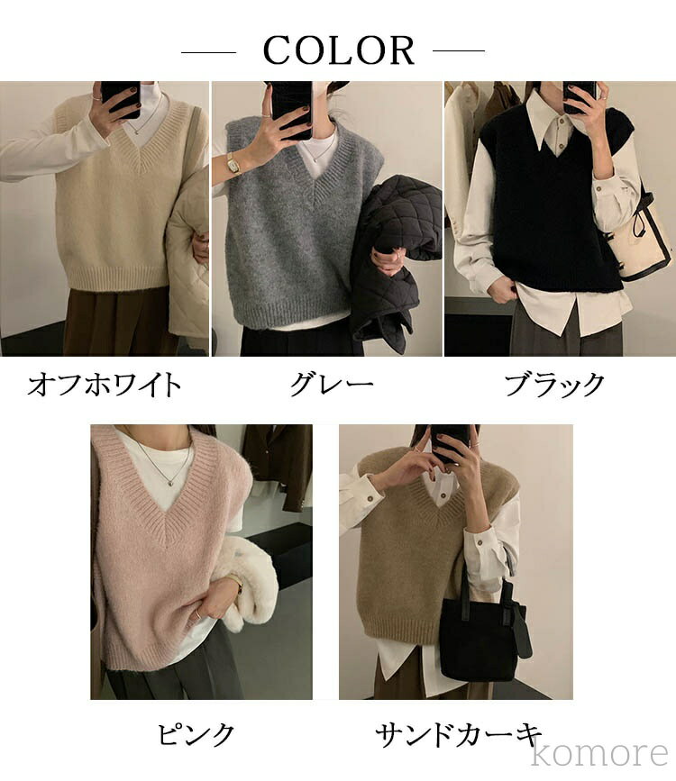 ■商品名 ニットベスト レディース 秋冬 ニットジレ ニットチョッキ Vネック ニットトップス 重ね着風 レイヤードベスト レトロ体型カバー ニットジレ 20代 30代 40代 50代 60代 お洒落 オシャレ きれいめ