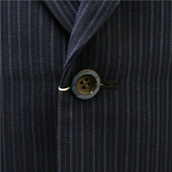 ・カラー:ダークネイビーにストライプ ・素材:表記なし ・型番: ・表記サイズ:ジャケット「-」 スラックス「-」 参考日本サイズ:「S」「A4」程度 (実寸サイズを参考にスタッフがスーツサイズを割り出したため、表記サイズと異なっている場合がございます。