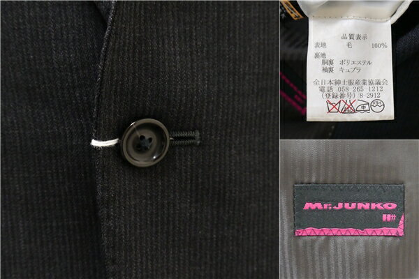 ・カラー:ダークグレーにストライプ ・素材:画像参照 ・製造会社:全日本紳士服産業協議会 ・型番:322120 ・表記サイズ:ジャケット「A6」 スラックス「A6」 参考日本サイズ:「M」「A6」程度 (実寸サイズを参考にスタッフがスーツサイズを割り出したため、表記サイズと異なっている場合がございます。