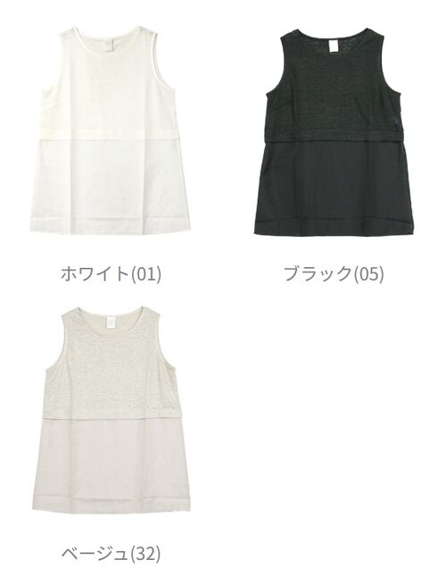 >>ギフト対応について 情報 PUPULA(ププラ) タンクトップ ノースリーブ カットソー 切替え インナー ゆったり リネン 麻 シンプル 無地 プレミアムリネン×ローン 切り替え タンクトップ ノースリーブ・157106