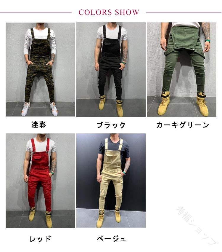 【3XL】 ウエスト102 ヒップ123 着丈105 モモ周り70.5 脚口34 素材 綿 デニム 色 ベージュ 迷彩 レッド カーキグリーン ブラック 備考 ●サイズ詳細等の測り方はスタッフ間で統一、徹底はしておりますが、実寸は商品によって若干の誤差(1cm~3cm )がある場合がございますので、予めご了承ください。