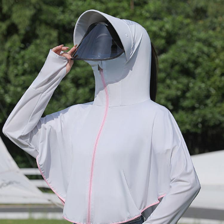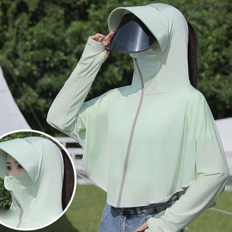 長く外出しなくてはいけない時も、紫外線から肌をしっかり守ります!指穴付きのデザインで手の甲までカバーし、首元までしっかり保護することができるため、日焼け対策にも効果的です。