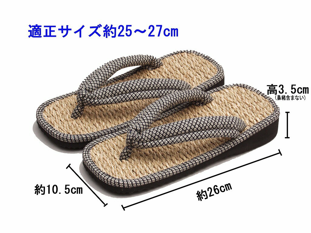 商品情報 商品サイズ・重量 約10.5×26×高3.5cm(鼻緒含まない) ・ 380.0G 個装サイズ・重量 11.0× 8.0× 26.5cm ・ 470g 素材 イ草 鼻緒/綿、スポンジ 裏底/合成ゴム 生産国 日本 注意事項 適応サイズ/約25~27cm 合成ゴム=EVA樹脂 イ草縄編み草履 女性用 イ草縄編み草履 男性用