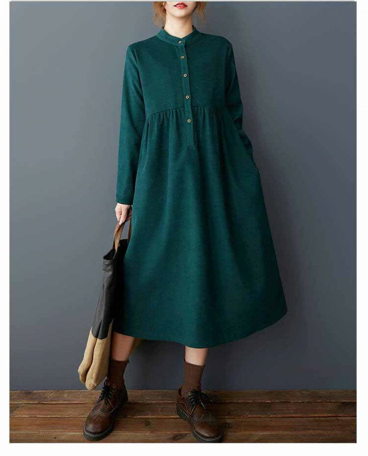 ワンピース ロングワンピース 長袖 レ ブラック ワインレッド グリーン ブルー M L XL 2XL