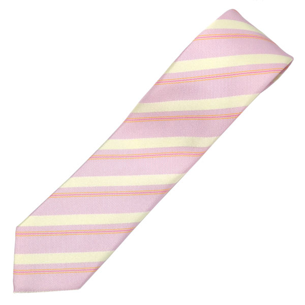 サイズ・・・大剣先の横幅 約7.5センチ 長さ約140cm カラー・・・ペールピンク×クリーム×オレンジのストライプ 素材・・ポリエステル100% 日本製 男女兼用 自分で結ぶタイプのネクタイ ◆生地裁断の都合上、柄の出方が写真と異なる場合がございます。