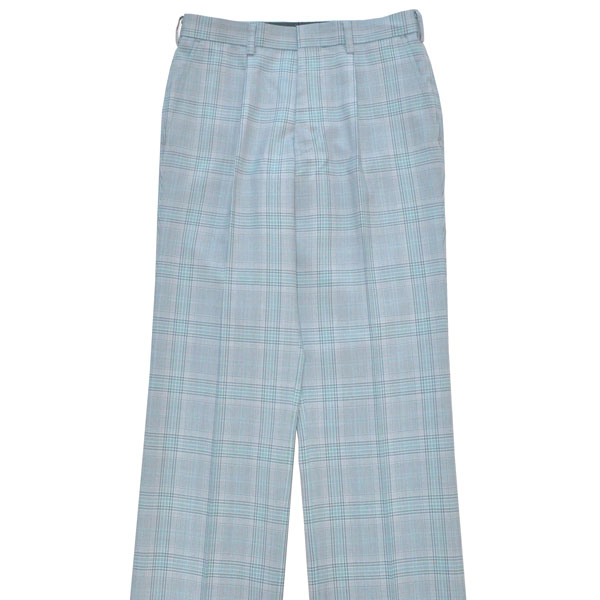 ★KURI-ORI-クリオリ-★ SKRB460SH1 サックスグリーングレンチェック オリジナルスラックススタイリッシュシルエット・ワンタック スリムでスタイリッシュ 座りやすくてはきやすいワンタックのスラックスです! *前股上が短く後ろ股上が長く、脇から見てウエストラインが前傾してます。