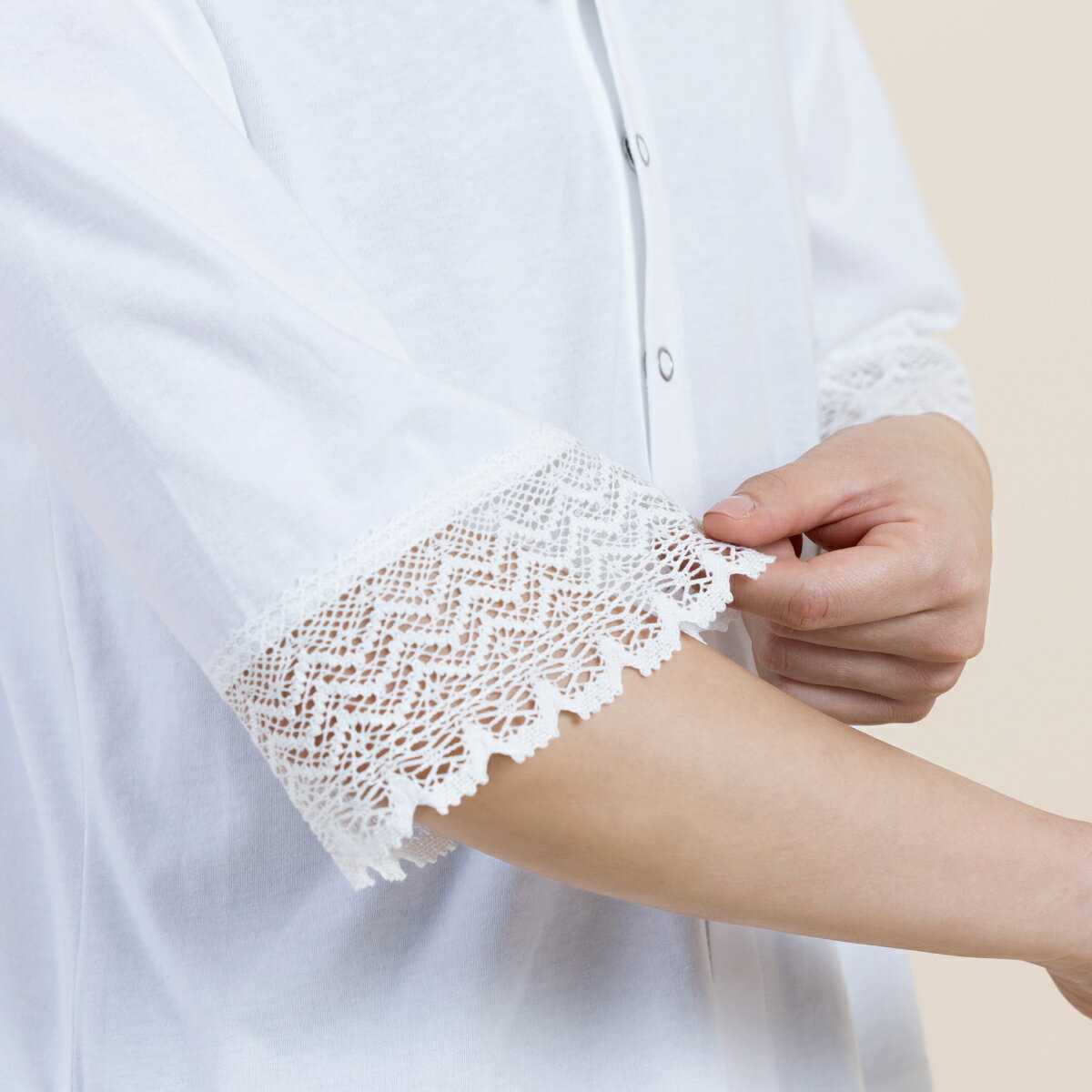 袖口にコットンのトーションレースを配し、華やかさをプラスしました。
