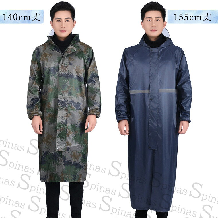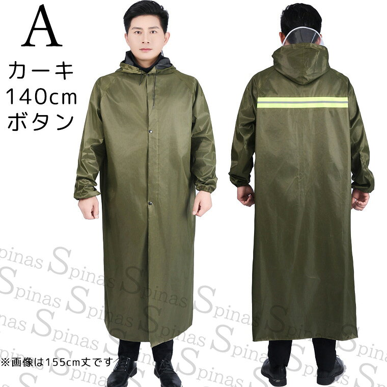 選べる丈/カラー 大きいサイズ 140cm 155cm カモフラ シンプルでカッコいい 反射テープ シンプル 男女兼用 ロングレインコート メンズ レインコート ロング丈 雨の日 お洒落 レインウェア 迷彩 アーミー カーキ マキシ丈 ツバ付き 送料無料