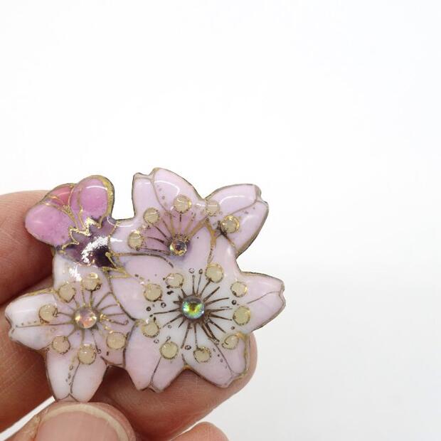 伝統工芸風の七宝焼とは、ひと味ちがう、 モダンであたたかみのあるデザインの、アンクル・ゼットの七宝焼の桜のブローチです。