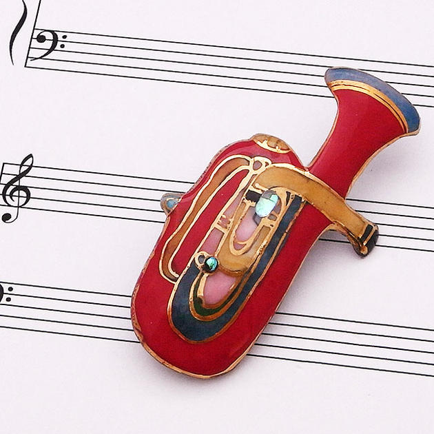 伝統工芸風の七宝焼とは、ひと味ちがう、 赤いチューバの帯留。