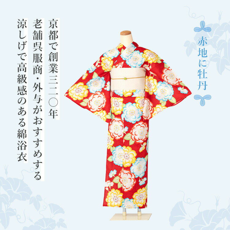 ブランド浴衣 山本彩 赤地に牡丹 夏祭り・花火大会などで着ていただける「綿浴衣」をお届けします♪京都で創業320年の老舗呉服商が自信を持っておすすめする綿浴衣です。