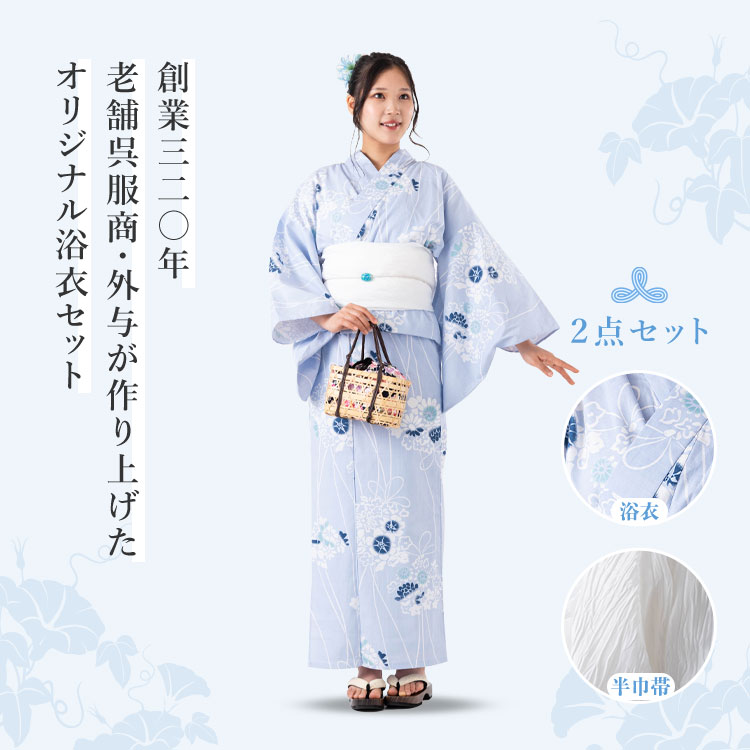 ▼アイテム キーワード 浴衣セット 浴衣 ゆかた ユカタ yukata 帯 半巾帯 セット 2点セット 帯セット コーディネート フリーサイズ 153cm〜168cm レディース 女性 女の子 大人 女物 大人浴衣 女浴衣 20代 30代 夏 花火大会 夏祭り デート 盆踊り 浴衣デート おしゃれ オシャレ お洒落 かわいい カワイイ 可愛い キュート 花柄 花 和柄 古風 レトロ モダン レトロモダン クール 上品 洗練 落ち着いた 華やか 粋 シンプル 簡単 販売 購入 通販 仕立て上がり品 老舗 京都 みさやま 外与 上質 本格 涼しい 綿 コットン 綿100%綿 浴衣2点セット 水色地に花々(帯 白) 夏祭り・花火大会などで着ていただける「浴衣&半巾帯」の2点セットでお届けします♪京都で創業320年の老舗呉服商が自信を持っておすすめするオリジナルの綿浴衣セットです。