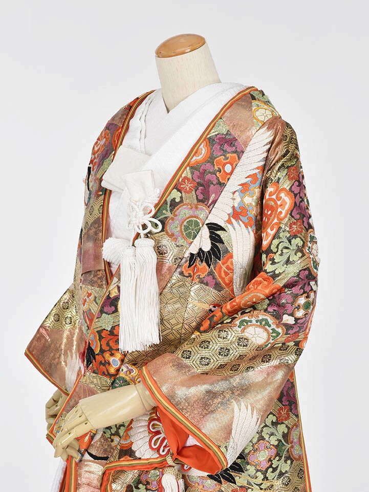 【レンタル】色打掛 花嫁衣裳 和装 神社挙式 結婚式 打掛 披露宴 金 重ね 文様 和婚 鶴 フルセットレンタル 和装前撮り 往復送料無料 7日間レンタル