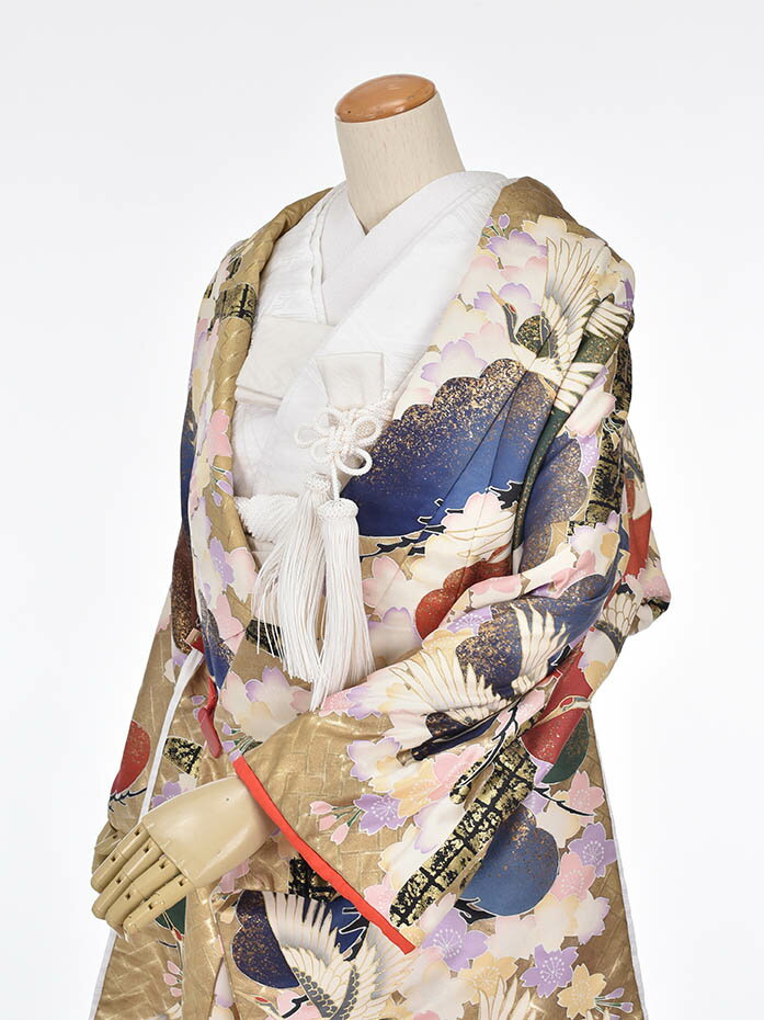 【レンタル】色打掛 花嫁衣裳 和装 神社挙式 結婚式 打掛 披露宴 友禅染 金 豪華 和婚 鶴 フルセットレンタル 和装前撮り 往復送料無料 7日間レンタル