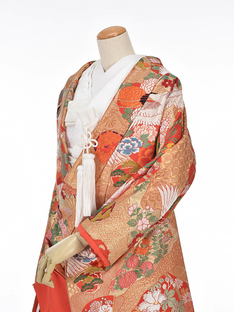 【レンタル】色打掛 花嫁衣裳 和装 格安 神社挙式 結婚式 打掛 披露宴 赤 和婚 鶴 吉祥文様 フルセットレンタル 和装前撮り 往復送料無料 7日間レンタル