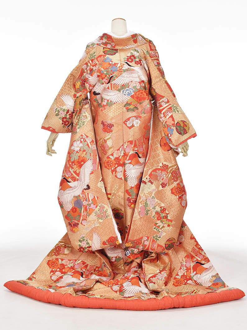 セット内容1) 色打掛 2) 掛下{白}3) 掛下帯 4) 帯揚げ 5) 長襦袢 6)帯締め 7) 肌着(きものスリップ) 8) 懐剣 9) 抱え帯 10) 帯板(前板/後板) 11) コーリンベルト 12) 三重仮紐 13) 腰紐6本 14) 帯枕 15) 伊達締め2本 16)足袋 17)扇子 18)草履 19)角隠し