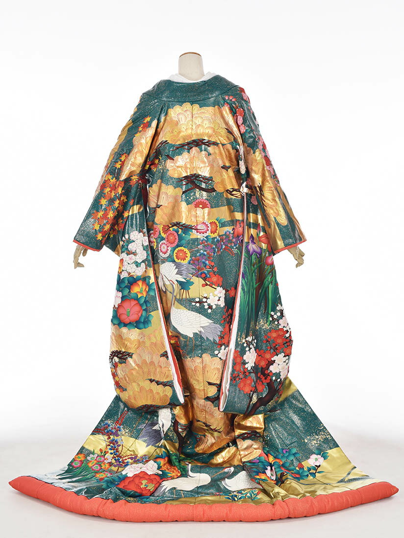 【レンタル】色打掛 花嫁衣裳 和装 神社挙式 結婚式 打掛 披露宴 友禅 緑 和婚 鶴 フルセットレンタル 和装前撮り 往復送料無料 7日間レンタル