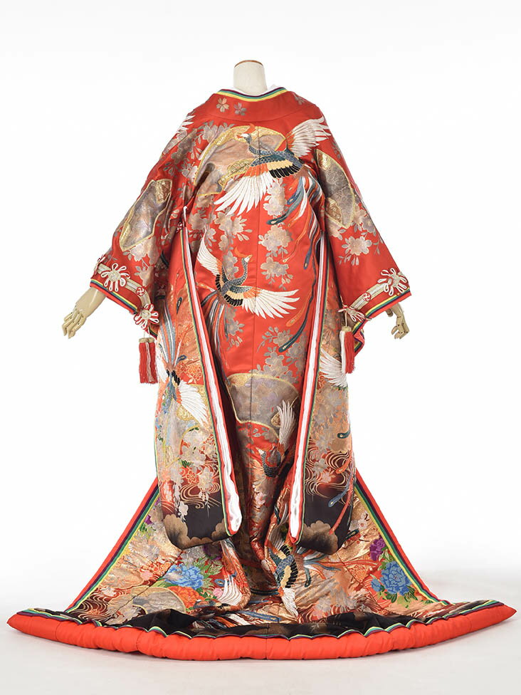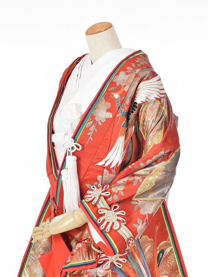セット内容1) 色打掛 2) 掛下{白}3) 掛下帯 4) 帯揚げ 5) 長襦袢 6)帯締め 7) 肌着(きものスリップ) 8) 懐剣 9) 抱え帯 10) 帯板(前板/後板) 11) コーリンベルト 12) 三重仮紐 13) 腰紐6本 14) 帯枕 15) 伊達締め2本 16)足袋 17)扇子 18)草履 19)角隠し