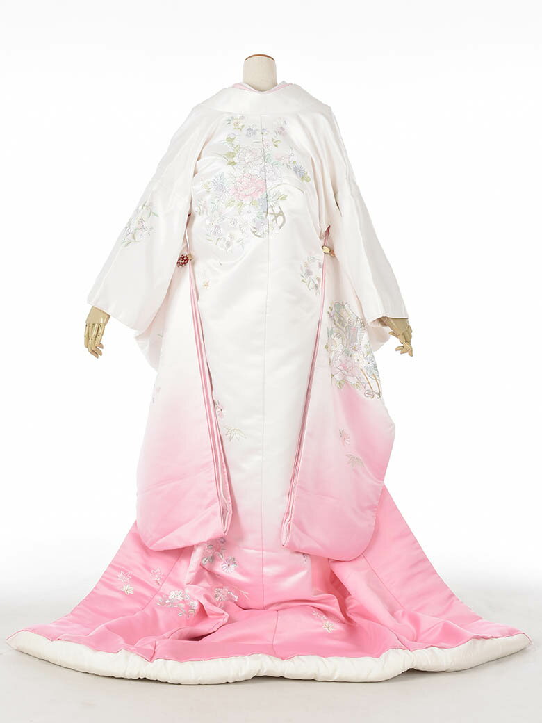 【レンタル】白地にピンクのグラデーションが可愛い! 白地にピンクのフェミニンな色打掛です。
