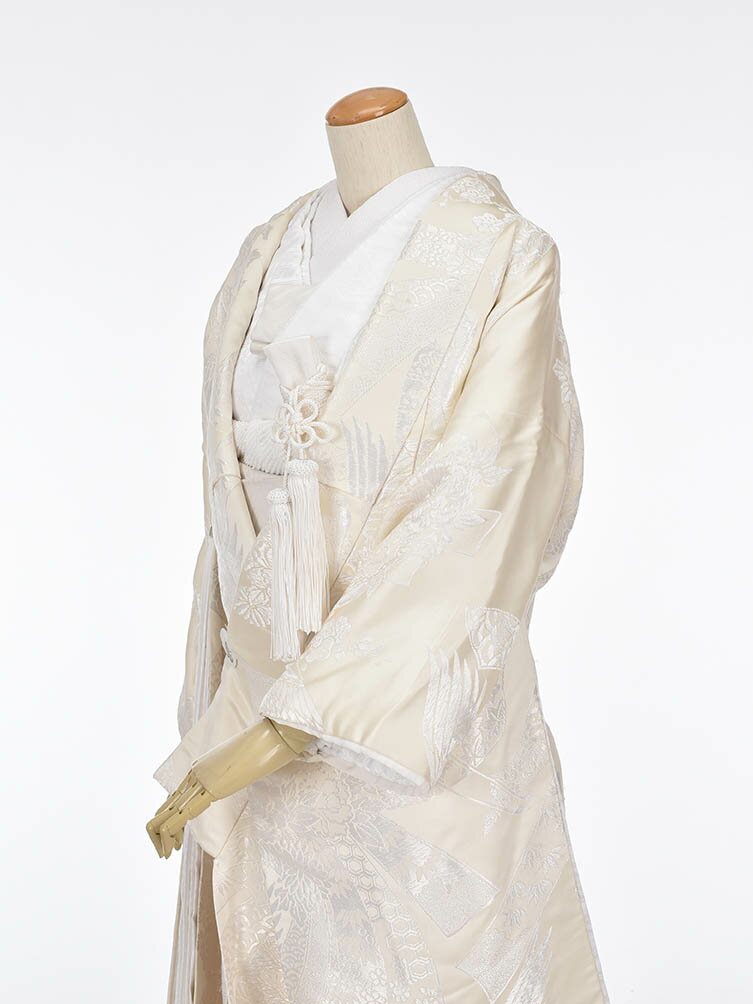 【レンタル】正絹の白無垢 熨斗目に鶴が優美に舞う、正絹の白無垢は日本の伝統美を感じます。