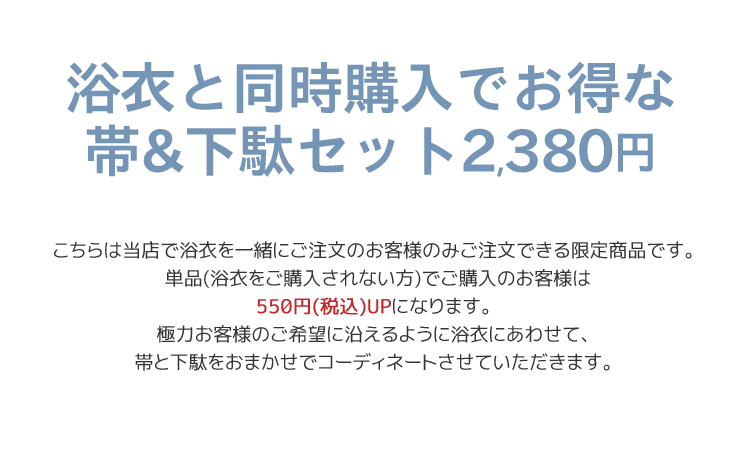 ) 単品でご購入のお客様(浴衣をご購入されない方)は550(税込)円UPになります。