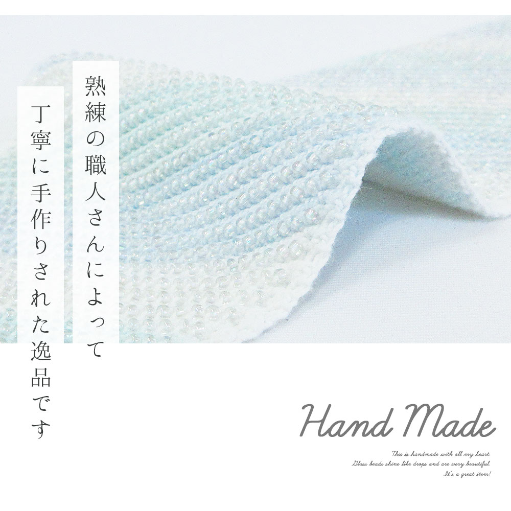 繊細に編み込まれたガラスビーズと柔らかな色身のグラデーションが衿元を明るく上品に演出してくれます。