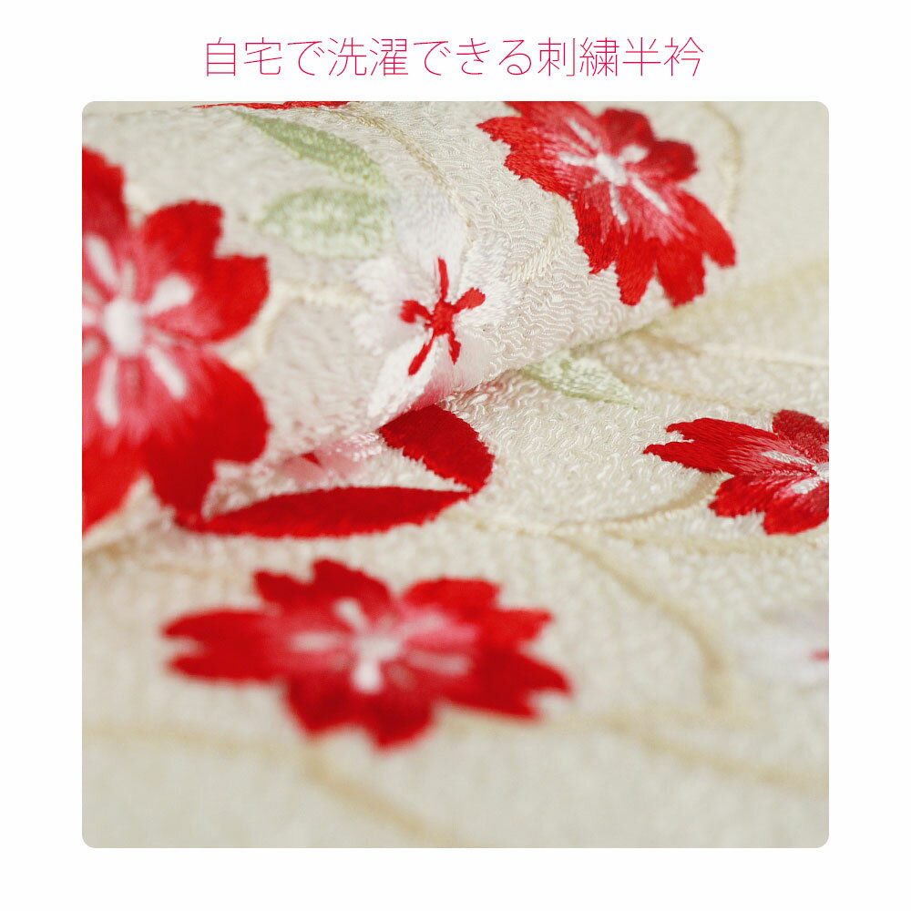 京都発 洗えるオシャレ刺繍半衿絹に近い肌触りを目指した高級ポリエステルを使い、しなやかさと利便性を兼ね備えた刺繍半衿です。