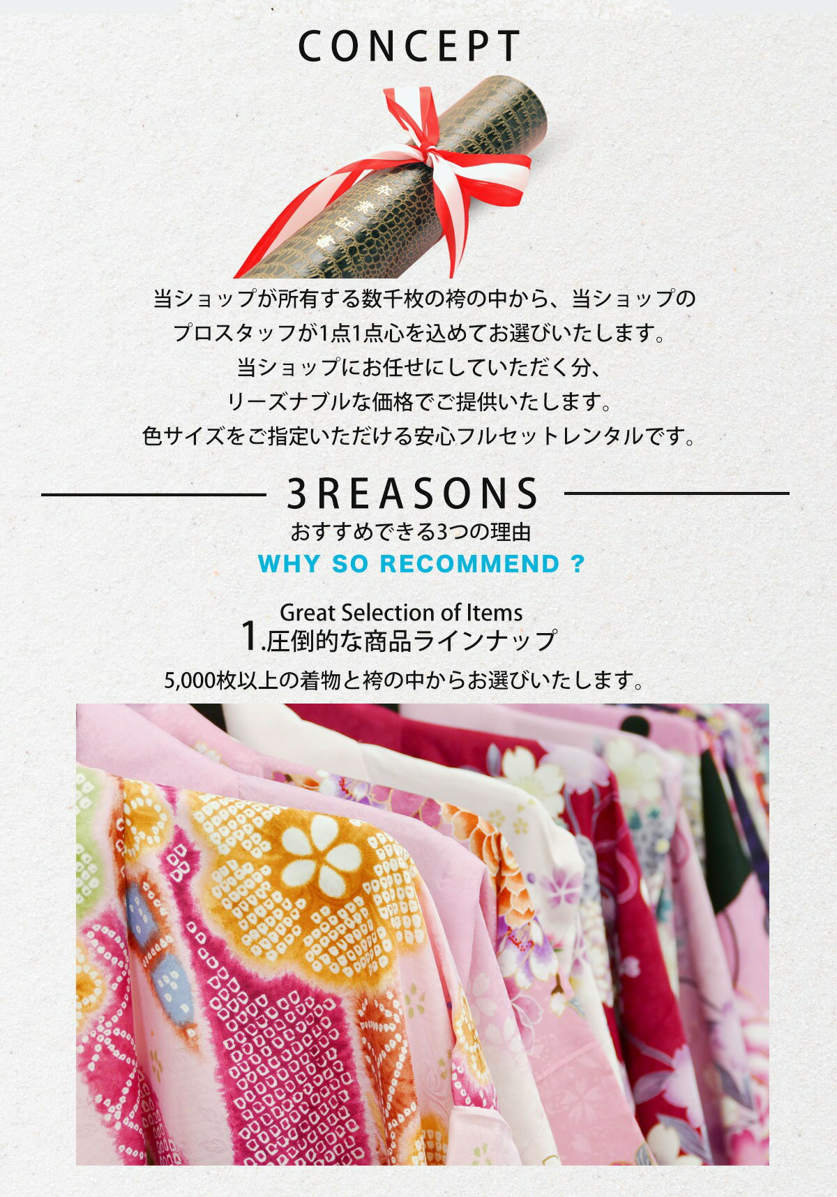 あとは、当ショプの着物のプロがお客様一人一人の為に、 心を込めて着物をご用意いたします。