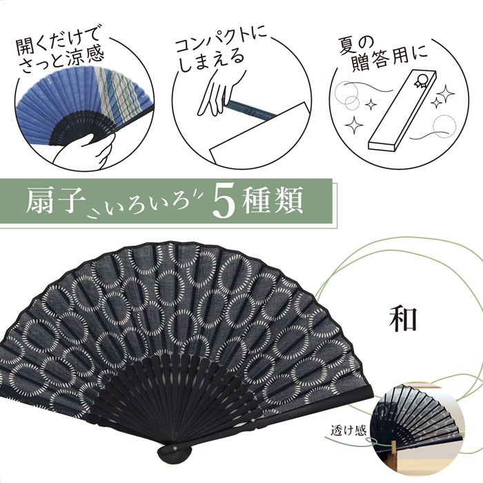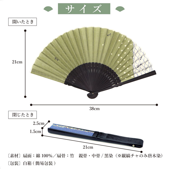 サイズ[開いた時] 横 約38.0cm 縦 約21.0cm [閉じた時] 横 約2.5cm 縦 約21.0cm素材生地 綿100%生産地デザイン:日本/加工:中国特徴透け感が涼感を誘う男性扇子。一つあると暑い時に便利注意事項■商品の撮影には最大限注意を払っておりますが、閲覧時のモニター環境によりましては実際の商品と若干違うお色味に映ることもございます。