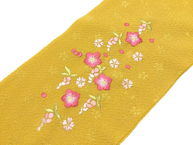 ポリエステル100% 刺繍糸:レーヨン100% ※洗濯の際、濃い色の製品は多少色落ちする場合がありますので他の物と区別して洗って下さい。 ※光の加減やブラウザ環境等により、写真と実物では多少異なることがございます。おしゃれちりめん刺繍半衿。ポリエステルなので洗えて便利です。 花の刺繍や地紋も可愛いポイントです。