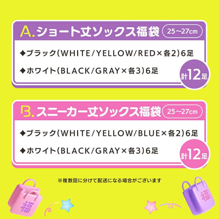 【福袋内容】・PUMA6足セットスニーカー丈25-27cm ブラック・PUMA6足セットスニーカー丈25-27cm ホワイト<A.ショート丈25〜27cm福袋>