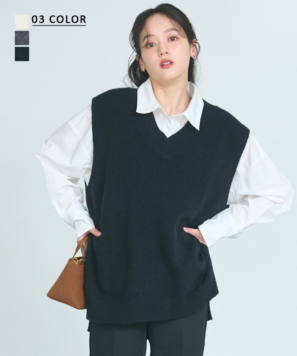 【商品説明】レイヤードにマストなニットベスト☆お洒落度やコナレ感が増やす、すとんとしたシルエットでコーデがスッキリまとまる♪お手入れがしやすいポリエステル混の素材でシワにもなりにくいのが嬉しいポイント!