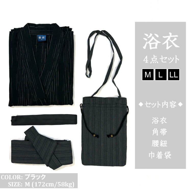 浴衣/ワンタッチ帯/腰紐/巾着 の4点セット。